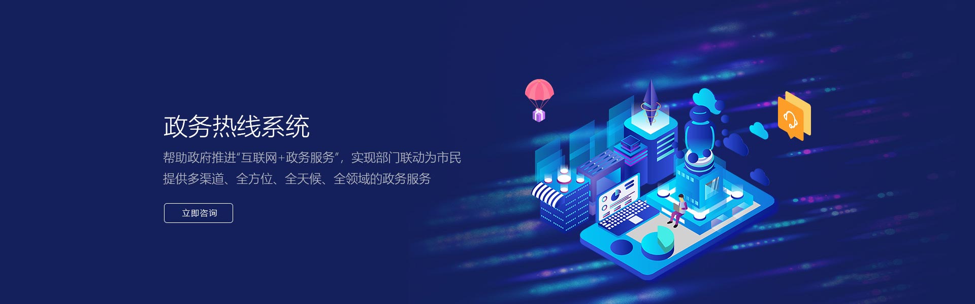 全宇科技政府熱線系統,幫助政府推進“互聯網+政務服務”,實現部門聯動,為市民提供多渠道、全方位、全天候、全領域的政務服務