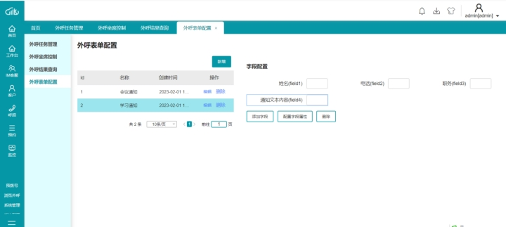 用于管理不同外呼通知里面需要導入的具體字段,如:姓名、職務、電話號碼、通知內容等。