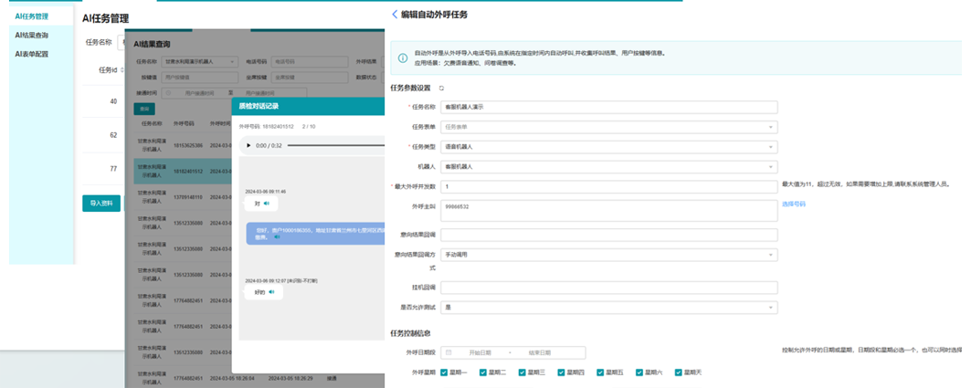 AI外呼機器人+電銷坐席系統+預撥號外呼,實現從數據對接、自動外呼、多輪對話交互、人工跟進到效果分析等全電銷流程管理